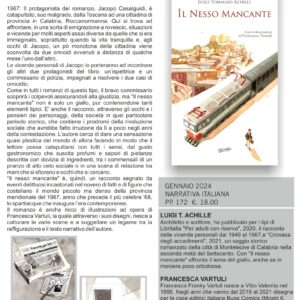 “Il nesso mancante” non è solo un giallo, pur contenendone tanti elementi tipici. Esso, infatti, è anche il racconto, attraverso gli occhi e i pensieri dei personaggi della società in quel particolare periodo storico, che contiene i prodromi della rivoluzione sociale che avrebbe fatto irruzione da lì a poco negli anni della contestazione.